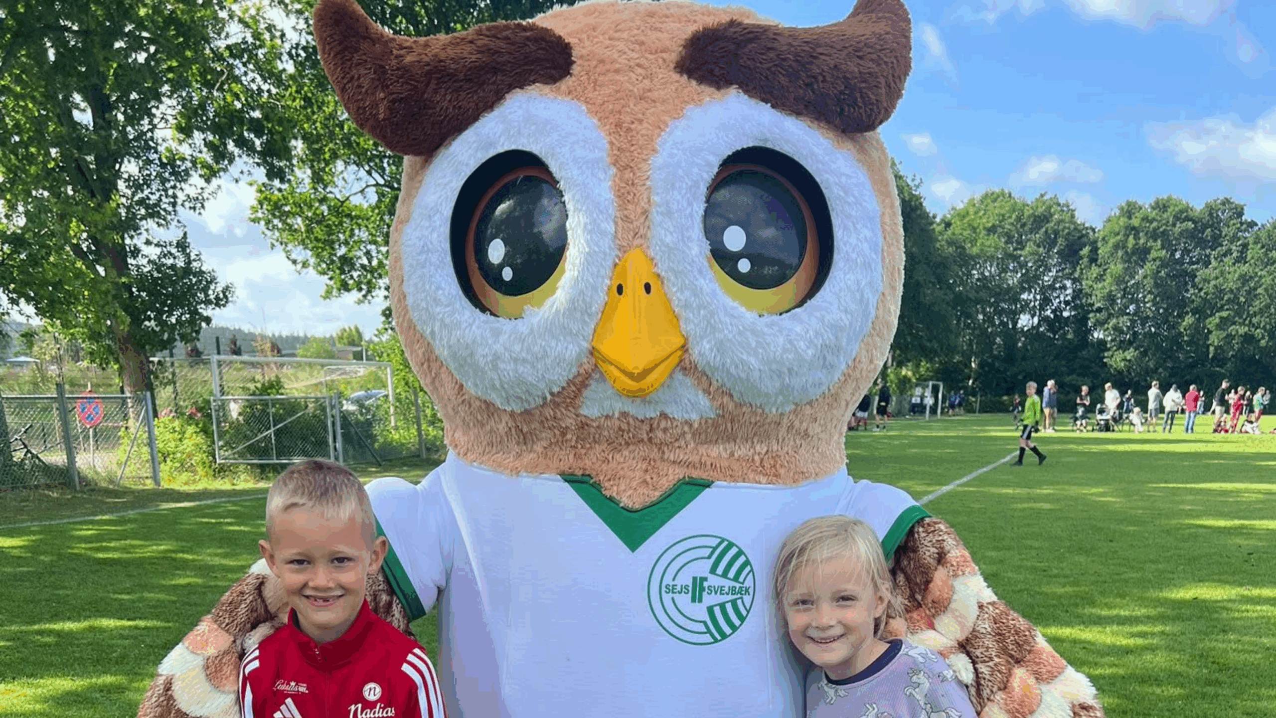 Vi designede og producerede en ugle-maskot iført Sejs Svejbæk IF’s sportstøj – et venligt, genkendeligt blikfang, der første gang blev taget i brug til Rema1000 Fodbold Cup i Sejs.